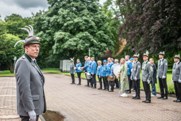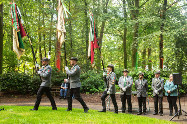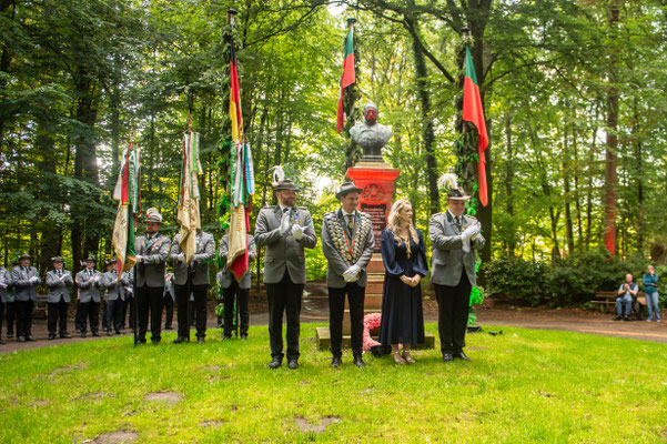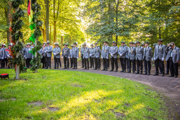 Die Traditionsgruppe am Freitag vor der Vogelrichtfeier bei der "König-Georg-Eiche" im Horner Holz.